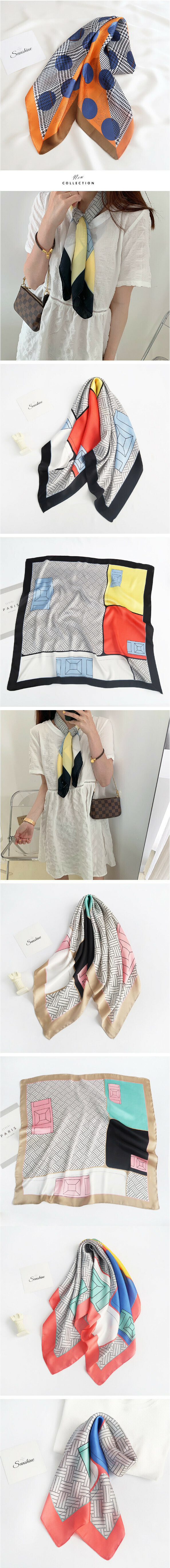 熱推印花仿真絲絲巾(波點千鳥格-淡藍色)(尺寸:70*70cm)