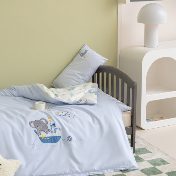 熱推純棉兒童被套+墊套+枕套(藍色小象遊輪【B類/抗菌/防蟎/0甲醛】)(三件套不含芯)