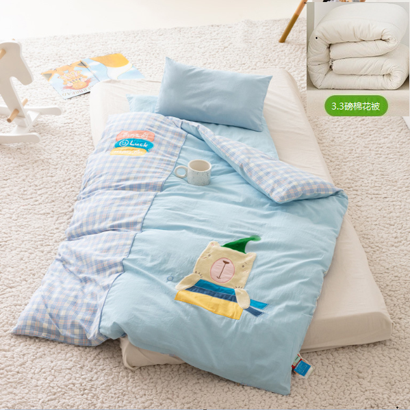 熱推純棉兒童被套+墊套+枕套(藍色心動寶貝熊【A類/抗菌/防蟎/0甲醛】)(3.3磅棉花芯六件套)