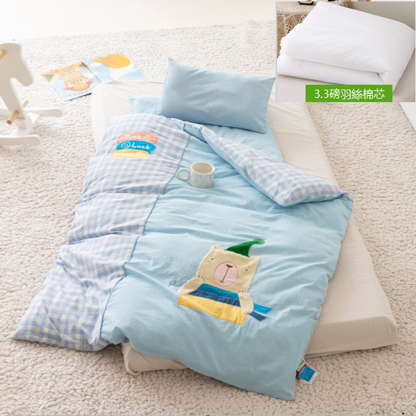 熱推純棉兒童被套+墊套+枕套(藍色心動寶貝熊【A類/抗菌/防蟎/0甲醛】)(3.3磅羽絲棉芯六件套)