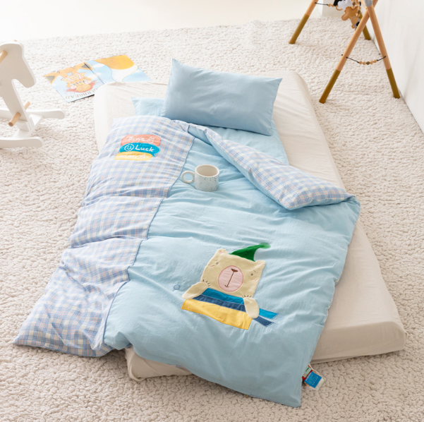 熱推純棉兒童被套+墊套+枕套(藍色心動寶貝熊【A類/抗菌/防蟎/0甲醛】)(三件套不含芯)