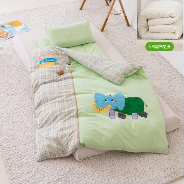 熱推純棉兒童被套+墊套+枕套(綠色心動泡泡象【A類/抗菌/防蟎/0甲醛】)(3.3磅棉花芯六件套)