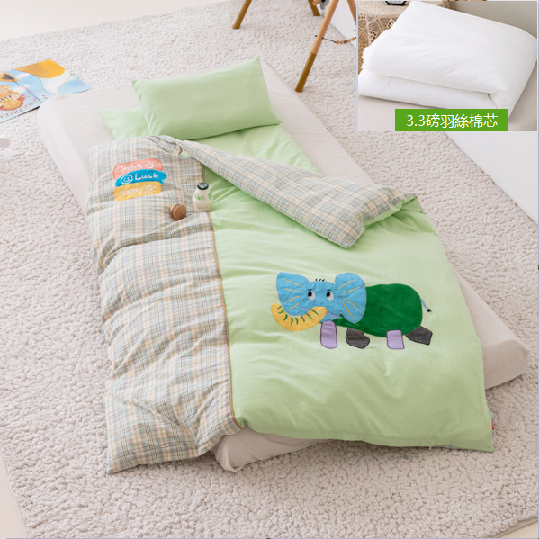 熱推純棉兒童被套+墊套+枕套(綠色心動泡泡象【A類/抗菌/防蟎/0甲醛】)(3.3磅羽絲棉芯六件套)
