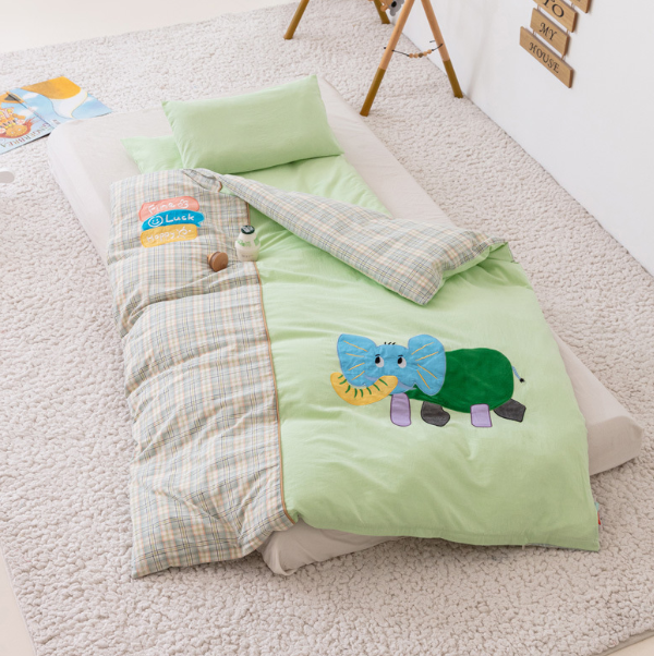 熱推純棉兒童被套+墊套+枕套(綠色心動泡泡象【A類/抗菌/防蟎/0甲醛】)(三件套不含芯)