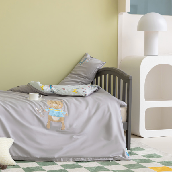 熱推純棉兒童被套+墊套+枕套(灰色熊寶寶【B類/抗菌/防蟎/0甲醛】)(三件套不含芯)