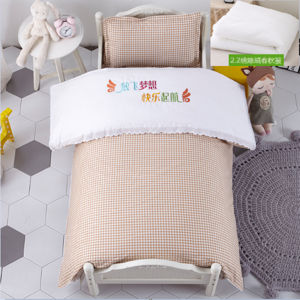 熱推純棉兒童被套+墊套+枕套(米蘭小格)(2.2磅羽絲絨六件套)