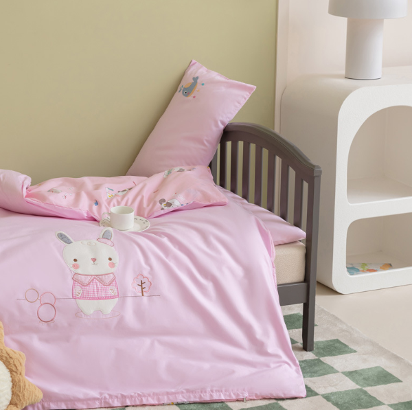 熱推純棉兒童被套+墊套+枕套(粉色胖胖兔【B類/抗菌/防蟎/0甲醛】)(三件套不含芯)