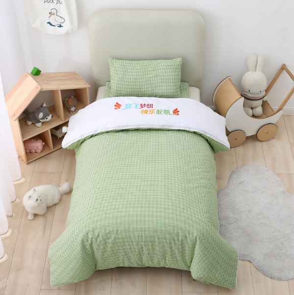 熱推純棉兒童被套+墊套+枕套(寧靜小格子)(三件套不含芯)