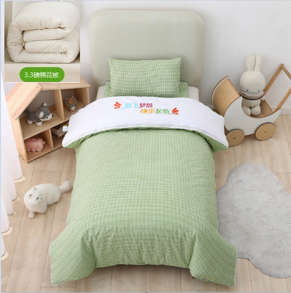 熱推純棉兒童被套+墊套+枕套(寧靜小格子)(3.3磅棉花款六件套【包布】)