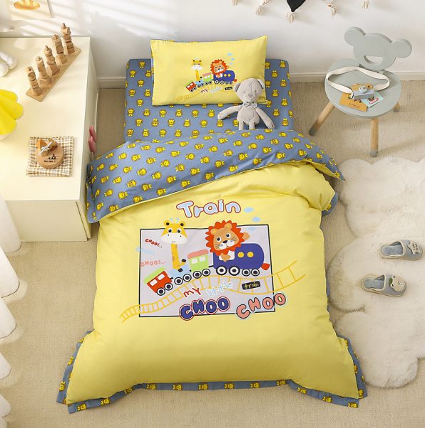 熱推純棉兒童被套+墊套+枕套(搖搖樂-黃【A類品質】)(三件套不含芯)
