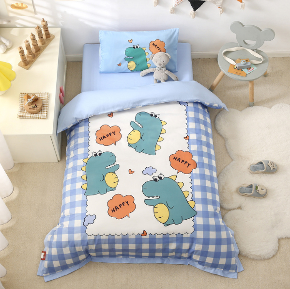 熱推純棉兒童被套+墊套+枕套(三只恐龍-藍【A類品質】)(三件套不含芯)