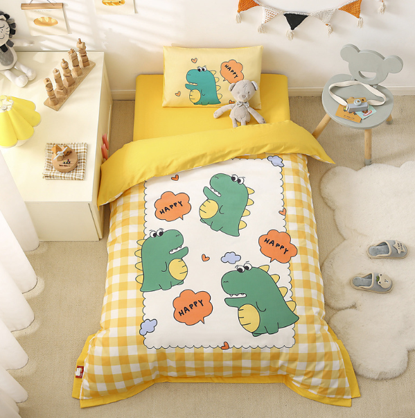熱推純棉兒童被套+墊套+枕套(三只恐龍-黃【A類品質】)(三件套不含芯)