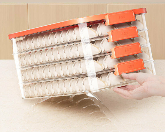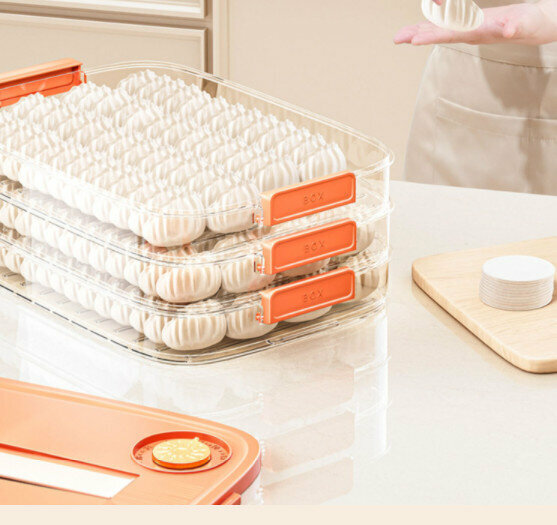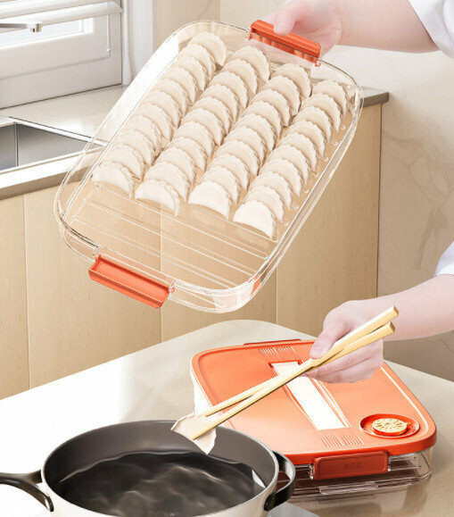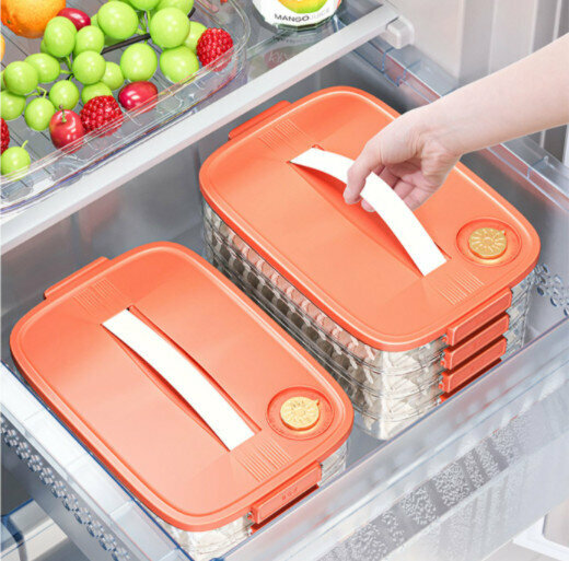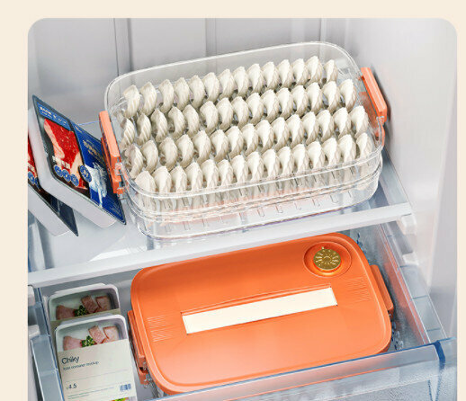 熱推水餃速凍盒【活力橙一層【可手提】可裝60個餃子】