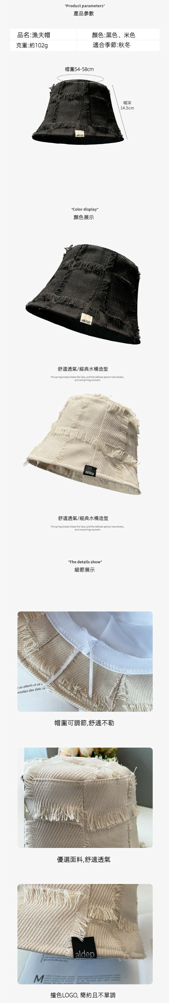 熱推毛邊格紋百搭漁夫帽(E-515CHT黑色)