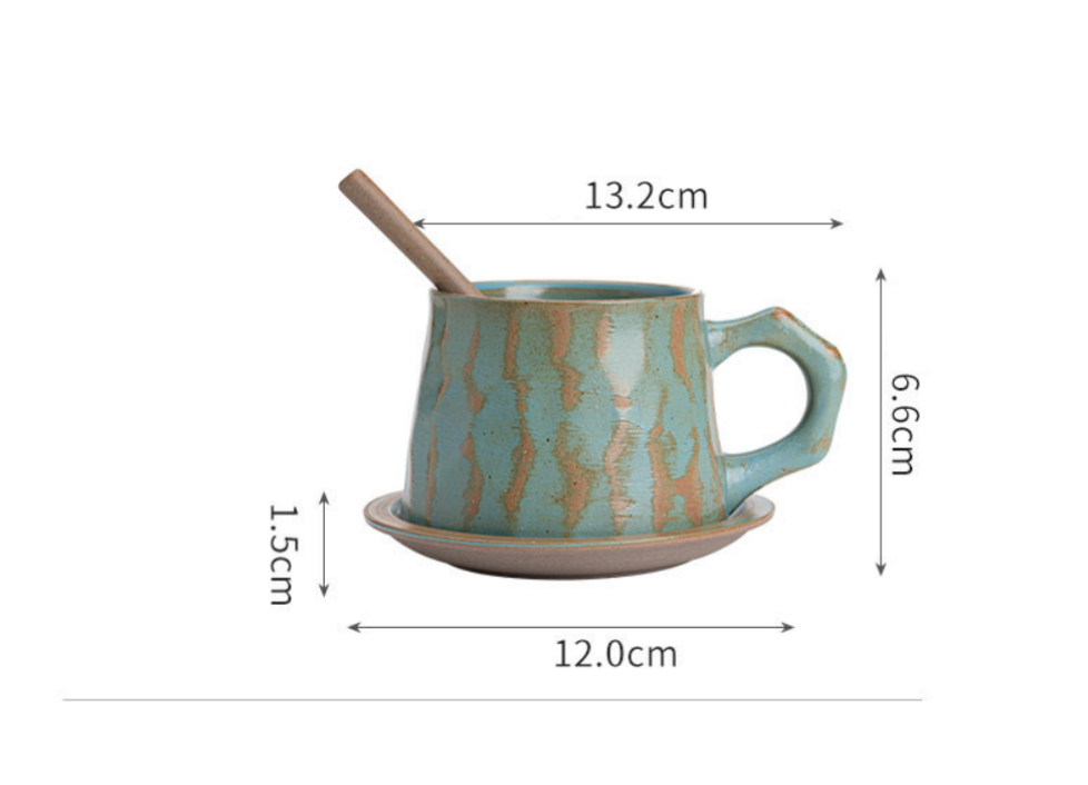 熱推復古陶瓷咖啡杯碟套裝(三件套咖啡杯-流釉黃)