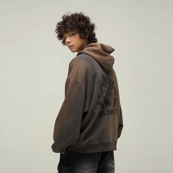 熱推復古扎染連帽重磅衛衣【咖啡色XL-2XL碼,下單後與客服確認發貨尺碼】