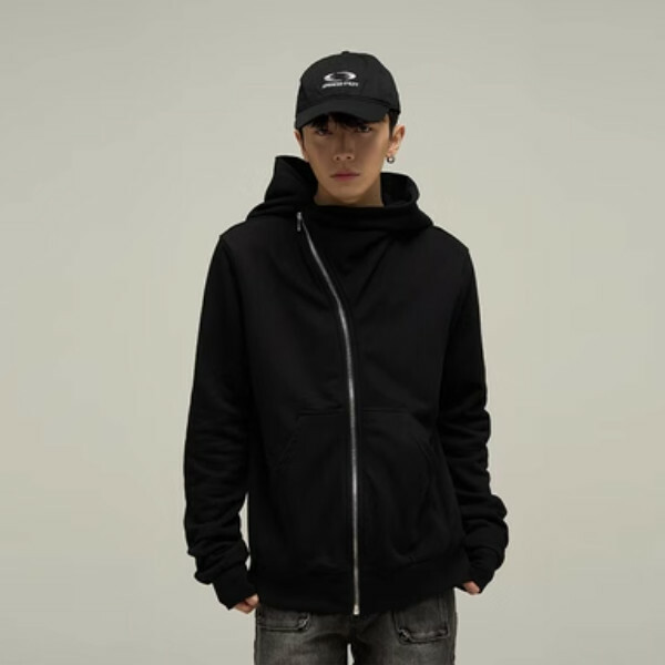 熱推復古廢土風斜拉鍊連帽外套衛衣【黑色M-XL碼,下單後與客服確認發貨尺碼】