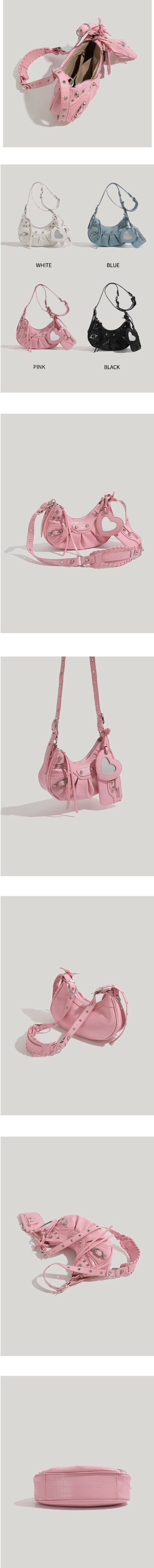 熱推鉚釘流蘇月牙斜挎包(牛仔藍)