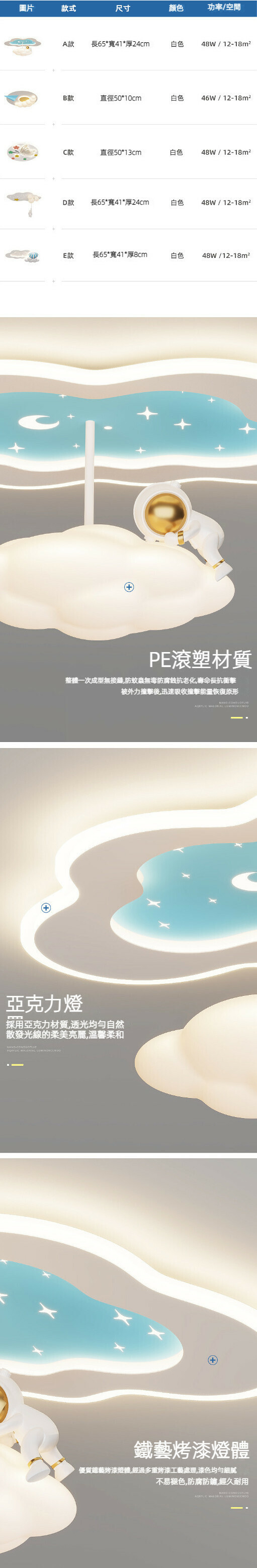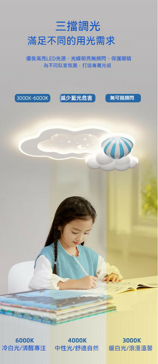 熱推兒童房簡約吸頂燈(雲朵氣球65cm-48W)【三色變光】