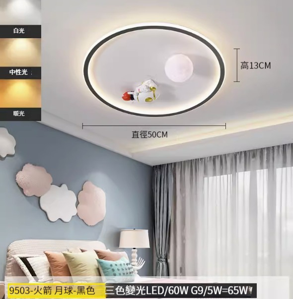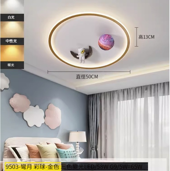 熱推簡約吸頂燈【火箭+彩球-金色-50cm-三色變光】