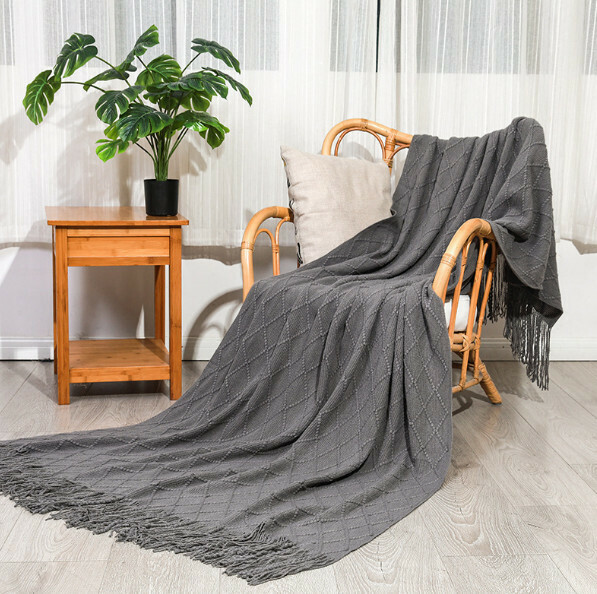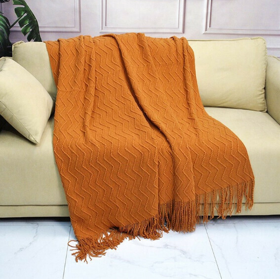 熱推純色午休蓋毯(暗橘色)(尺寸:130*230cm含流蘇)