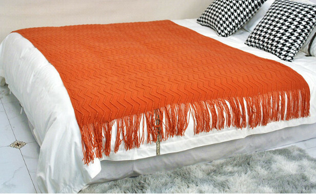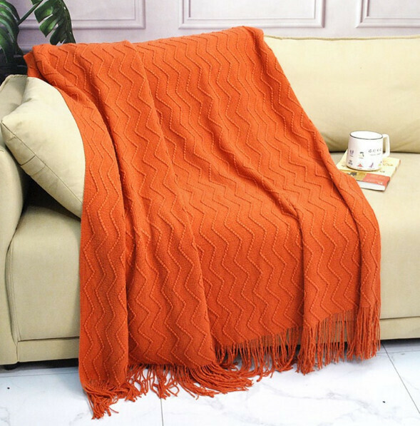 熱推純色午休蓋毯(暗橘色)(尺寸:130*260cm含流蘇)
