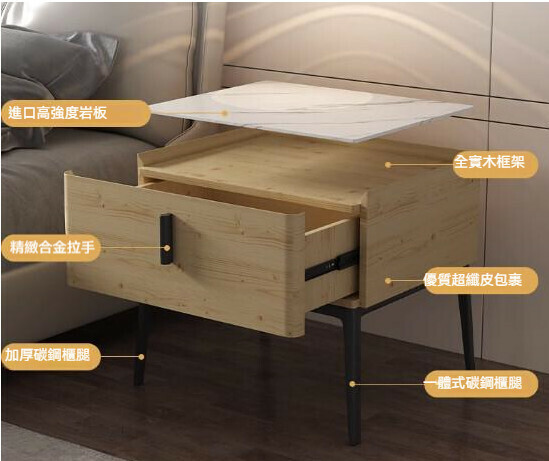 熱推全實木床頭櫃(深灰色)(尺寸:長50x寬40x高48cm)