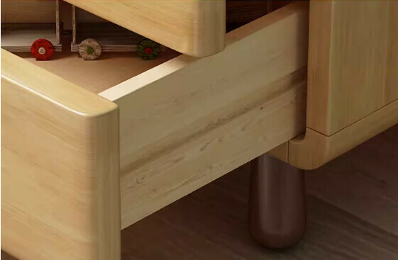 熱推原木色實木床頭櫃(雙層抽屜)(尺寸:長42x寬36x高45cm)