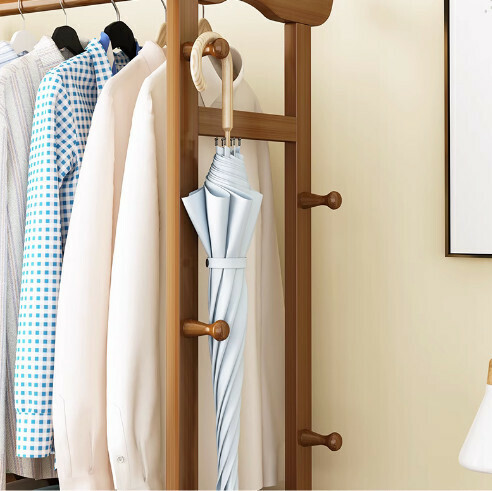 熱推實木衣帽架(茶色雙抽褲架款-90cm長)
