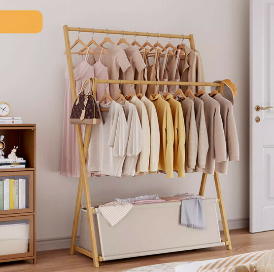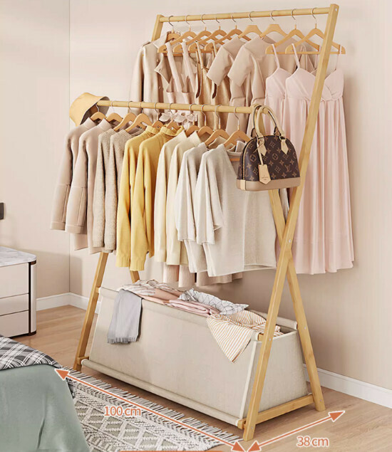 熱推實木落地衣帽架(原色-普通款50cm長)