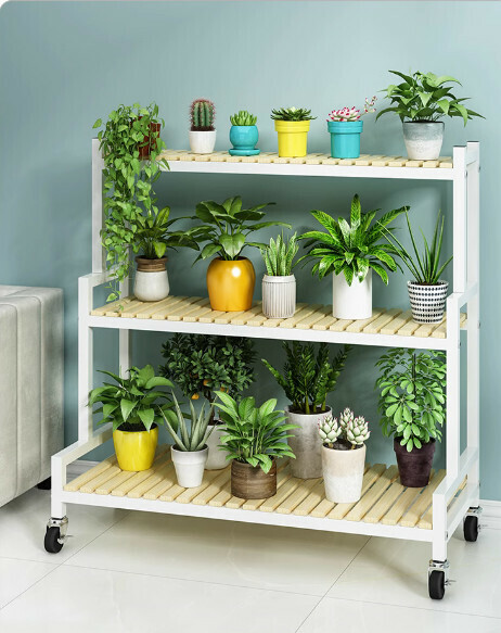 熱推實木花架(【三層】碳化白架)【尺寸:長80高105cm】