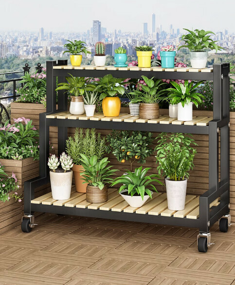 熱推實木花架(【三層】原木黑架)【尺寸:長80高105cm】
