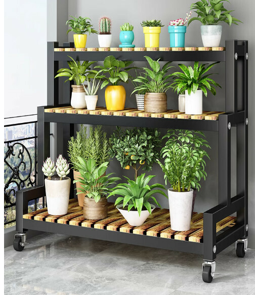 熱推實木花架(【兩層】原木黑架)【尺寸:長120高65cm】