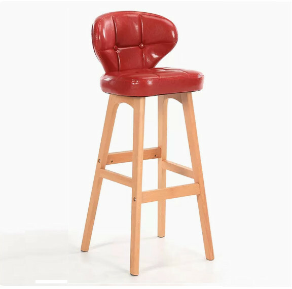 熱推實木傢具 吧凳 餐椅 前台椅【實木腳款+PU皮革】78cm坐高 原木架+火山紅色