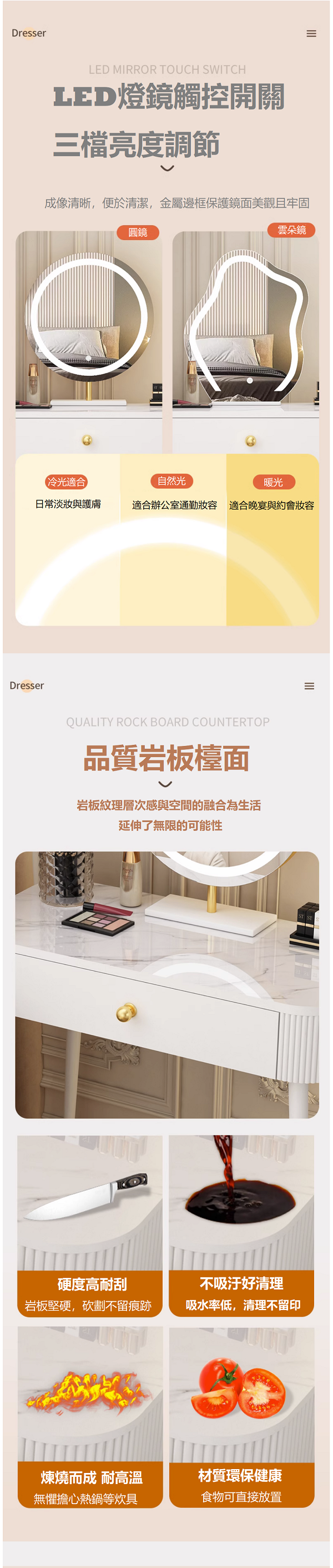 熱推實木高光滑加厚岩板面化妝櫃(輕奢黑色100長岩板桌+智慧鏡+烏巢凳)