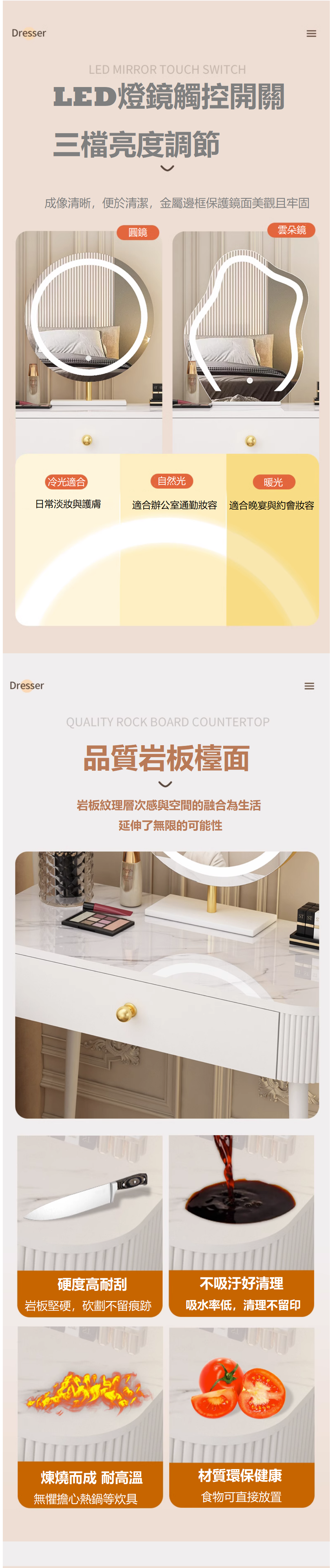 熱推實木高光滑加厚岩板面化妝櫃(輕奢黑色60長岩板桌+智慧鏡+烏巢凳)