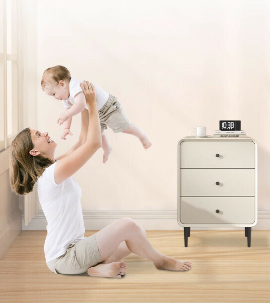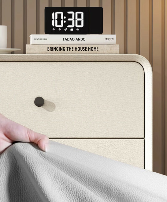 熱推實木皮質床頭櫃(淺灰色)(尺寸:長40x寬40x高60cm)
