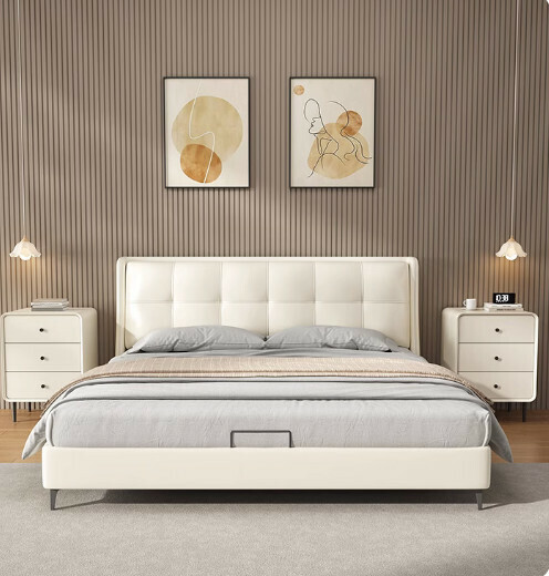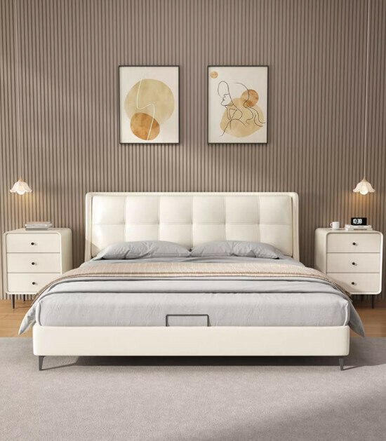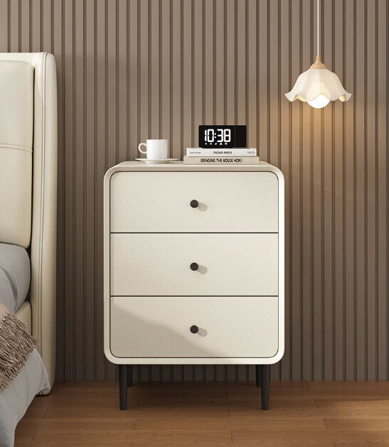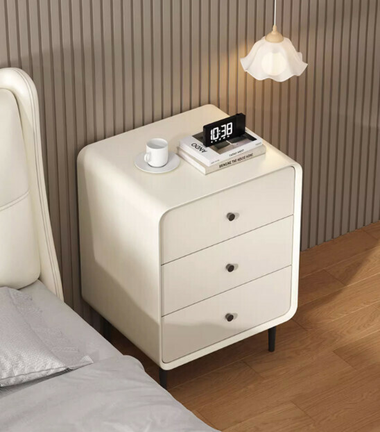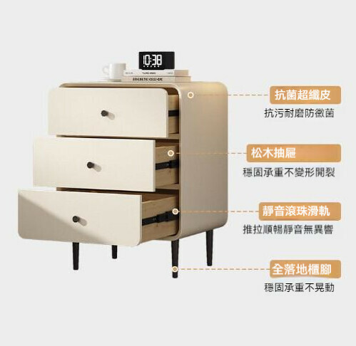 熱推實木皮質床頭櫃(米白色)(尺寸:長45x寬40x高60cm)