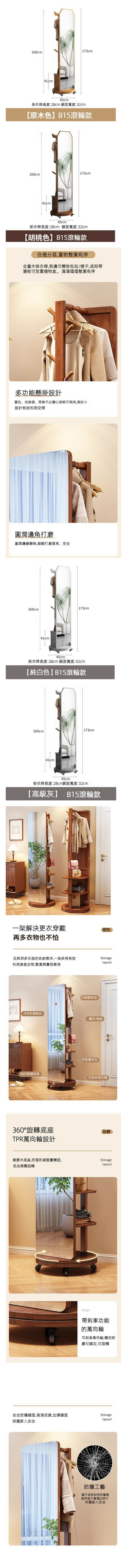 熱推全實木旋轉滾輪雙抽屜款全身鏡(灰色)