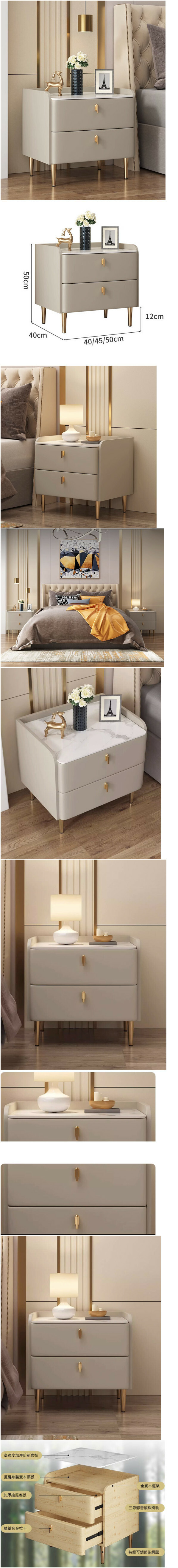 熱推全實木岩板床頭櫃(雙層奶白色+黑)(尺寸:長50x寬40x高50cm)