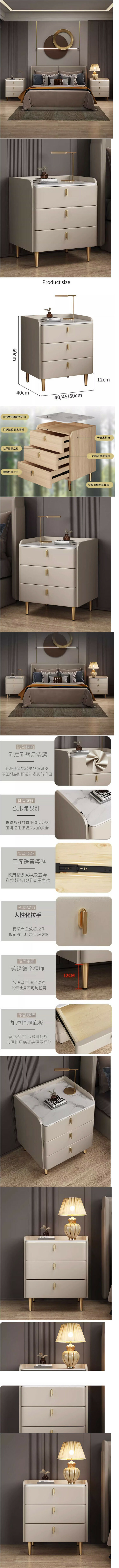 熱推全實木岩板床頭櫃(三層香檳灰+金)(尺寸:長50x寬40x高60cm)