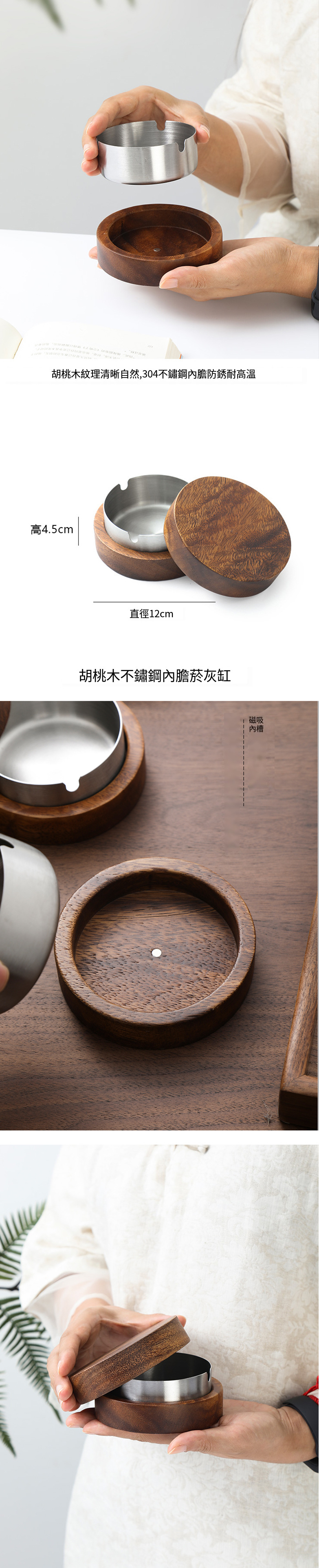 熱推實木不鏽鋼煙灰缸桌面擺件(胡桃木款)
