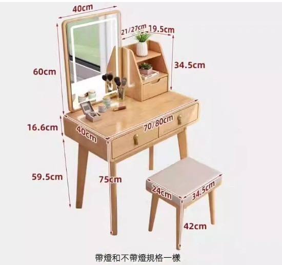 熱推實木收納櫃一體梳妝台(70cm原木配白色無燈)