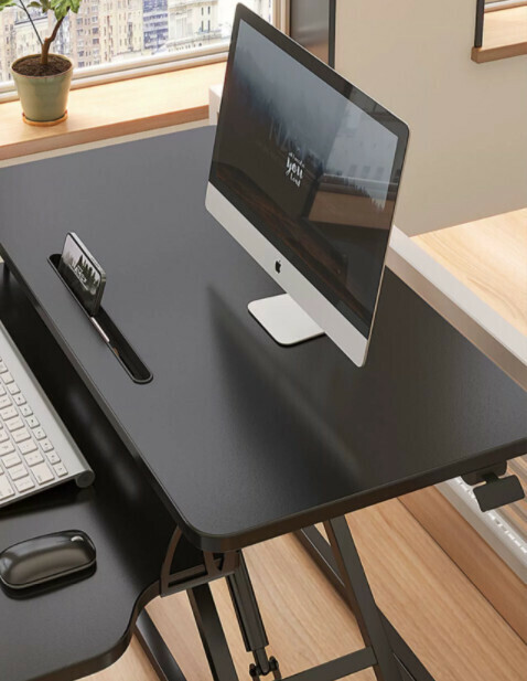 熱推站立式電腦桌(簡約款-商務黑)【氣動無極懸停升降】