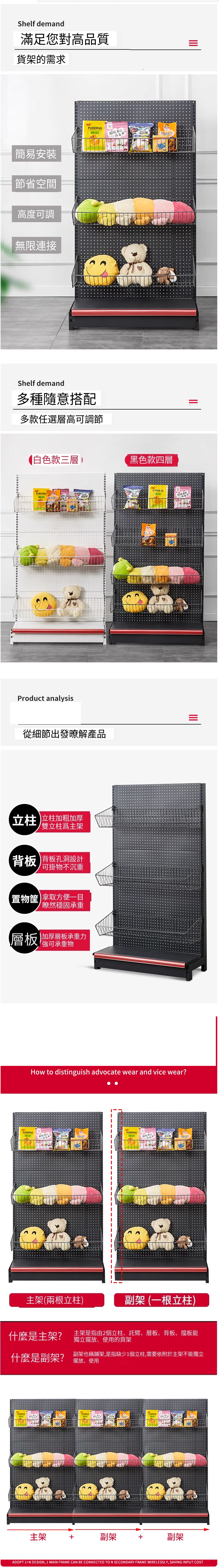 熱推超市貨架可拆卸 展示架 飾品配件架 書架 【磨砂灰單面90*40*195四層主架】