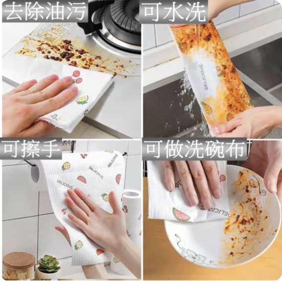 熱推加厚印花百洁吸油吸水懶人紙抹布(干濕兩用-可水洗重复使用)1卷裝 圖案随機