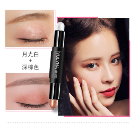 熱推雙色眼影棒防水持久大地色高光珠光閃粉(1#)(咖啡色+淺金色)