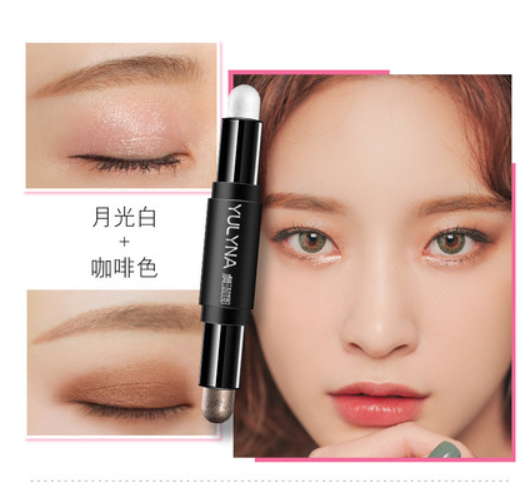 熱推雙色眼影棒防水持久大地色高光珠光閃粉(3#)(桃粉+淺金棕)