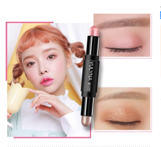 熱推雙色眼影棒防水持久大地色高光珠光閃粉(4#)(月光白+咖啡色)