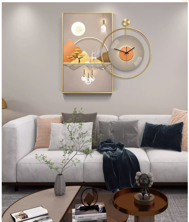 熱推掛鐘(M-02裝飾畫+掛鐘組合高貴金框)80X80釐米